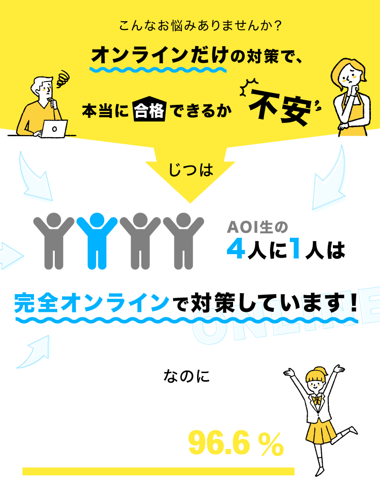 AOIは、最適化されたカリキュラムのもと、志望校合格に直結する学びを徹底的にしていきます。